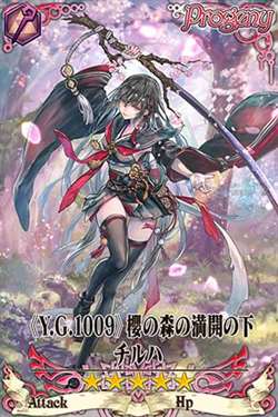 ◆战场上我方全体攻击力(15%)增加、防御力(15%)增加、移动速度增加。每次获得法珠,一定时间内(90秒)我方全体攻击力(5%,加算)增加、防御力(5%)增加、移动速度增加、暴击率增加、暴击威力(5%)增加 ◆战斗开始时及BOSS WABE开始时,发动必杀技「我方全体一定时间内(300秒)一定间隔(2秒)HP超上限(80%)小回复(1倍),同时解除全部异常状态。地形一定时间内(300秒)变更为夜之森林」。并且地形为夜时,我方全体攻击力(10%)增加、防御力(10%)增加、移动速度增加。自身的场合,攻击间隔进一步缩短(→1.1秒) |