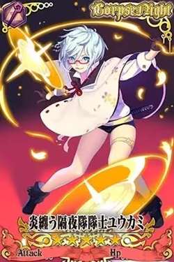 ◆战场上我方攻击力(10%、10%)增加、暴击率增加、暴击威力(10%、10%)增加。地形为夜时,效果上升,自身攻击间隔进一步缩短(→1.1秒)。 ◆战斗开始时及WAVE开始时,发动必杀技「地形一定时间内(300秒)变为夜之街中,给予前方范围内的全部敌人火属性伤害(20倍),一定时间内(30秒)生成火属性反响范围。反响范围内被攻击的敌人同范围内全体敌人都受到部分伤害(50%)。」 |