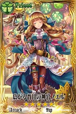 ◆攻击力(25.5%、10%)增加、暴击威力(50%、50%)增加、通常回复的回复量(50%、50%)增加。战场上有自身以外的队员时,效果上升,此外通常回复的回复速度(→0.6秒)增加,回复范围前移 ◆通常回复行动时,解除全部异常状态,回复范围内的我方一定时间内(45秒)攻击力(30%,加算)增加、防御力(30%)增加、移动速度增加,敌方一定时间内(45秒)攻击力(30%)降低、防御力(30%)降低、移动速度降低。此外给予回复范围内的全部敌人暴击攻击伤害(暴击伤害*4) |