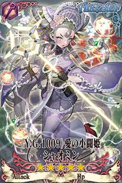 ◆攻击力(?%)、暴击率增加。并且战斗开始时及WAVE开始时发动必杀技「自身一定时间内(120秒?)攻击速度(→1.0?秒/下)增加,给予前方范围内的全部敌人大伤害(?%),使其眩晕,一定时间内(30秒)生成反响范围,反响范围内被攻击的敌人同范围内全体敌人都受到部分伤害(50%),并使其眩晕」 ◆攻击间隔缩短(→1.5秒)。此外攻击时,被攻击的敌人一定时间内(?秒)攻击力(?%)、防御力(?%)、移动速度降低。并且远距离暴击时变为5连击的范围攻击,暴击威力(?%)增加 |